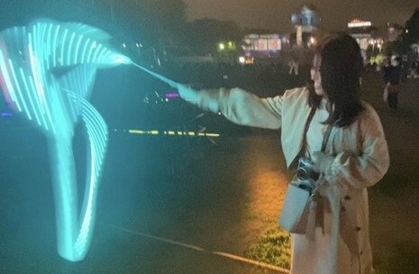 魔法のようなワクワク空間をつくるメディア技術に触れる大学生でした。リオオリンピック閉会式のテレビ放送で初めてAR技術を目にし、現実空間にCG映像が融合する映像に感動したことをきっかけに、大学の研究ではAR映像を裸眼で観察できる空中映像技術を使ったエンターテインメント開発に取り組んでいました。他には、CGをクリエイター視点でも学びたいと思い、大学の授業と並行してCGの専門学校に1年間通ったりもしました。学業以外には軽音ライブの照明演出をしたり、趣味でデジタルアートや音楽ライブの鑑賞を楽しむ学生でした。振り返ると、自分の「好き」を模索するように、ときめいたものにとりあえず触れてみる学生生活だったと思います。